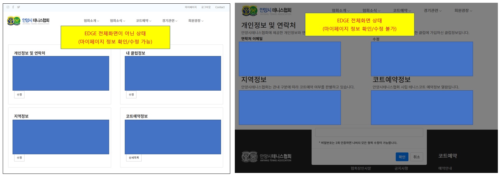 몇 몇 분이 안양시 홈페이지의 마이페이지 내용을 확인할 수 없다는 글을 올리셨고
