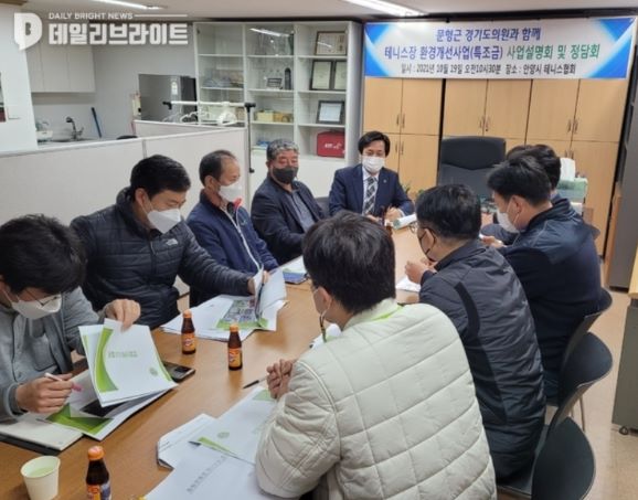 [ 데일리브라이트 ]경기도의회 문화체육관광위원회 문형근 의원(더민주, 안양3)이 19일 안양시 테니스협회에서 운동장․테니스장 조명등 및 환경개선사업에 대해 논의하는 시간을 가졌다고 밝혔다.