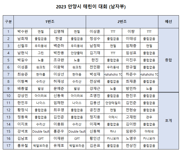 아래 공지된 예선 테니스장에 9시까지 출전신고 해주시기 바랍니다.