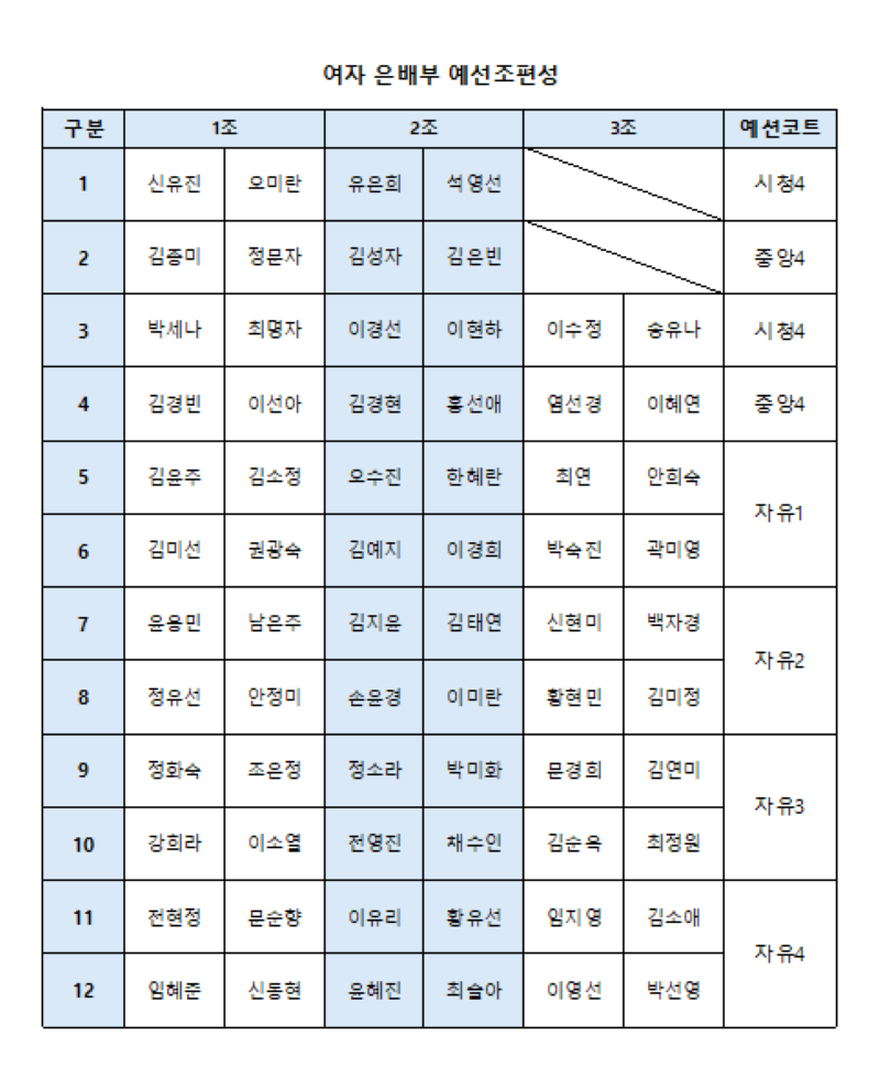 여자 은배부 예선조편성