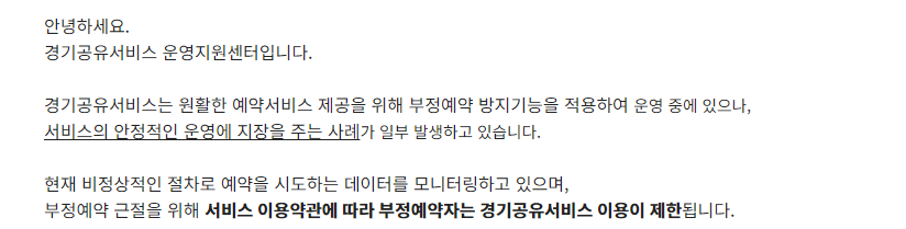 예전에 예약자 확인이라는 매크로 예약과는 전혀 관련이 없는 조치 같은 유명무실한 조치를 할것이 아니라, 협회 회원들의 의견을 수렴해서 확실한 조치를 취해주시기 바랍니다.