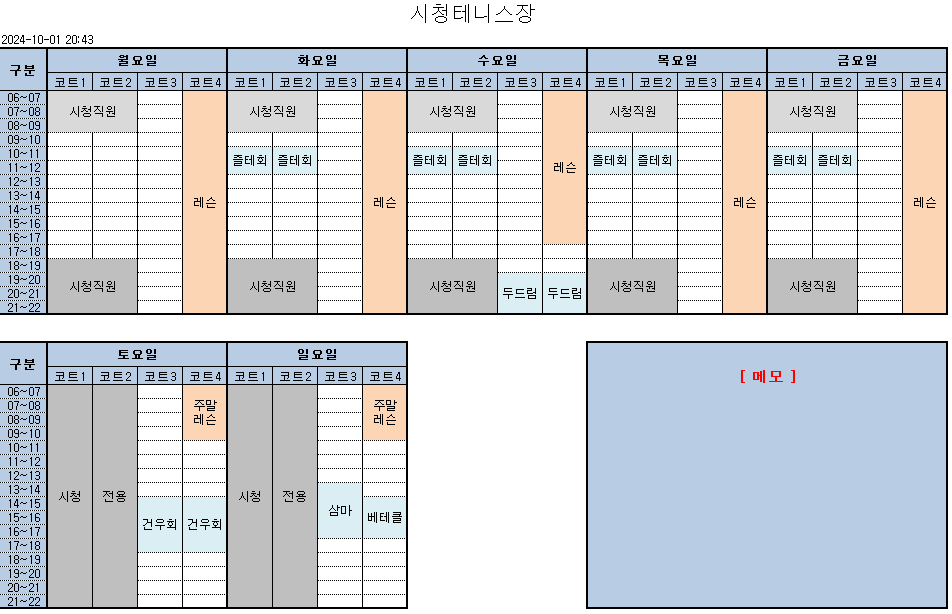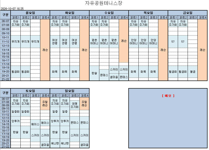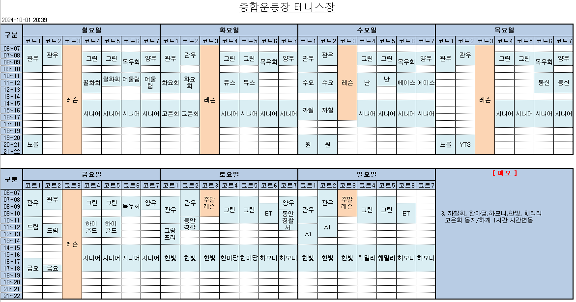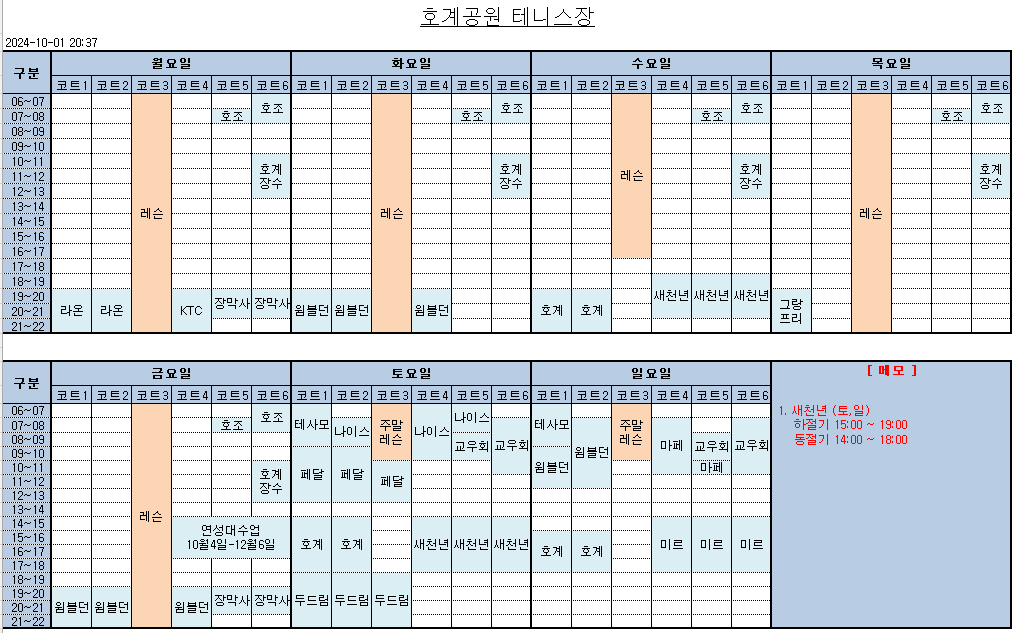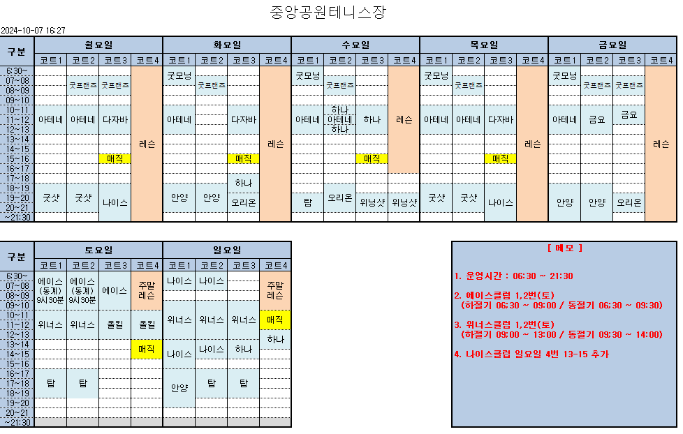 10월14일 부터 격주로 적용되는 고정클럽 스케줄입니다.