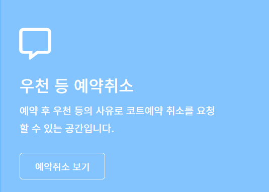 우천 취소는 우천취소게시판에 해야 환불처리 됩니다.