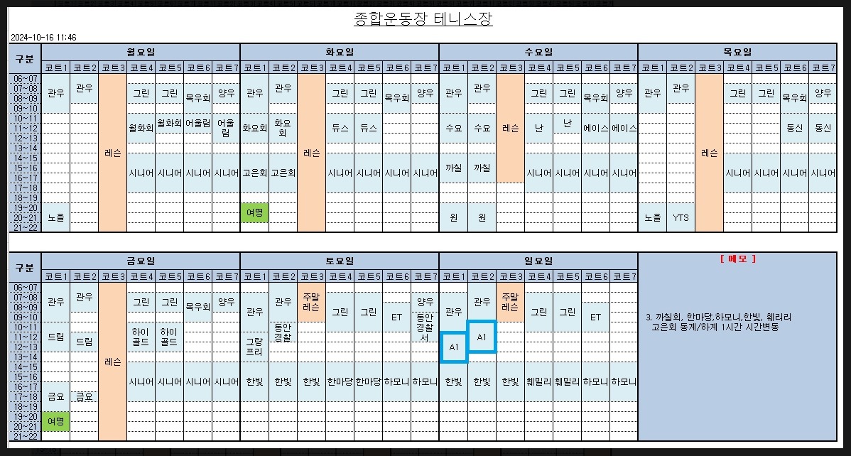 더불어, 매주 마주치는 고정 클럽간에 코트 사용시간을 이유로 불필요하게 오해가 생기는 일도 예방가능 할 듯 하오니,
