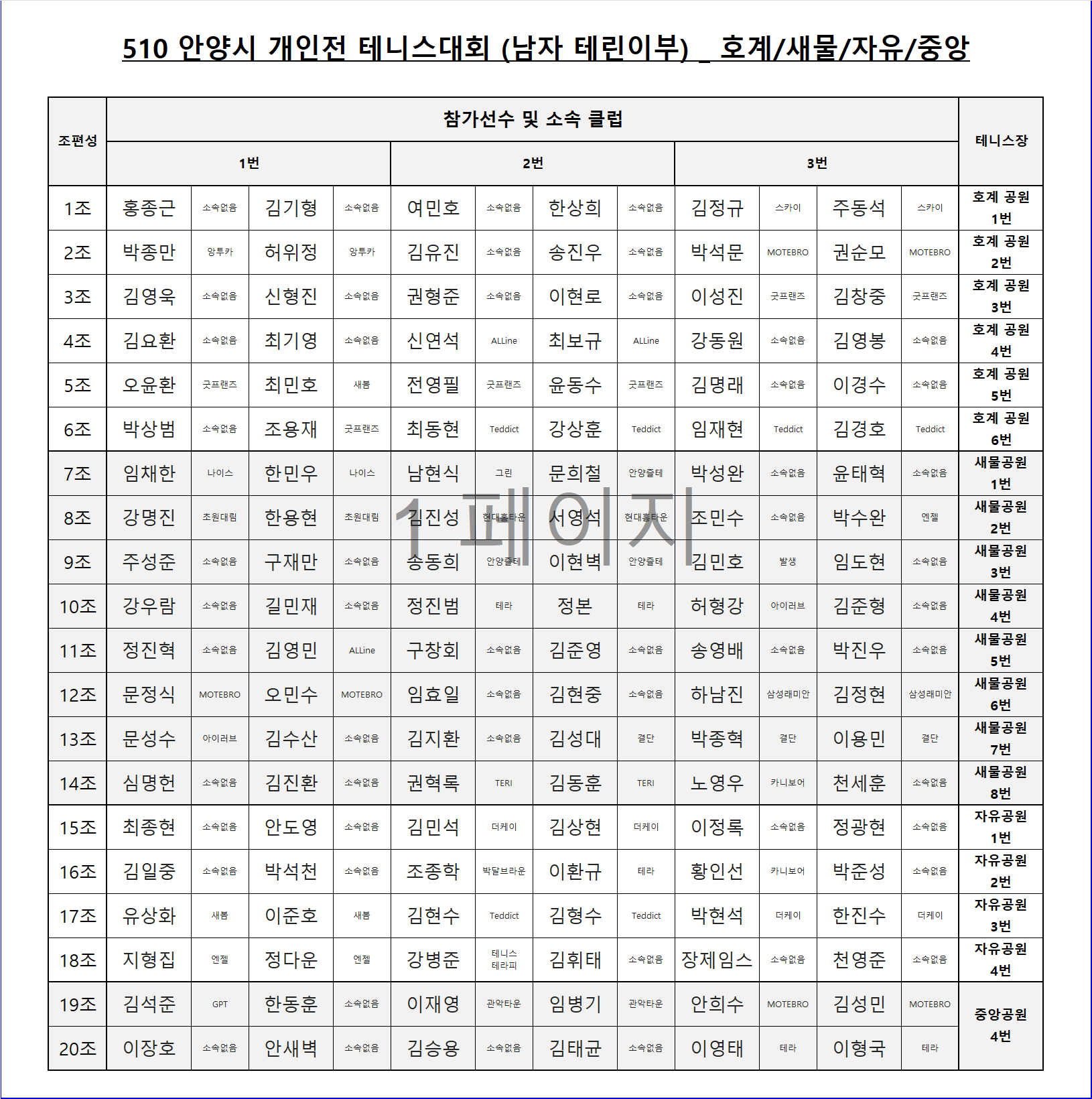 ㆍ12:30 분까지 해당 코트로 출전 신고 해주세요.
